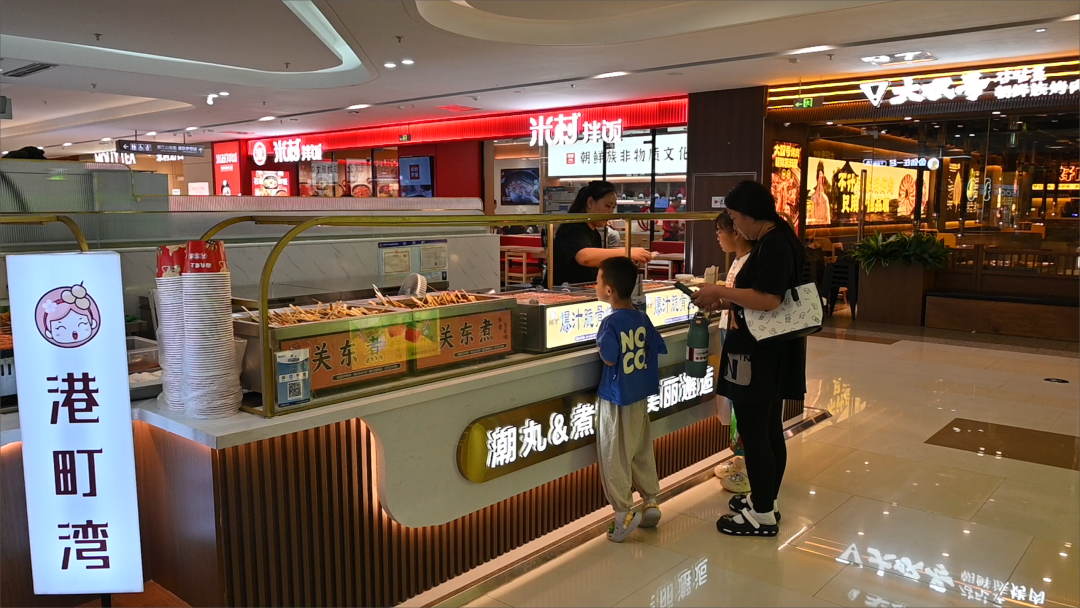 在宴乐园商业中心,新鲜果切、冰镇饮料、零食大礼包、香气扑鼻的“牛粪”烧饼等各类美食琳琅满目,为观赛前后的球迷提供了及时的能量补充。